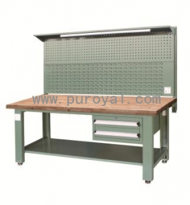 重型工作台带双吊抽/底部搁板和挂板(榉木台面),XFJ-1820DG11