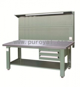 重型工作台带双吊抽/底部搁板和挂板(包不锈钢台面),XFB-1520DG11